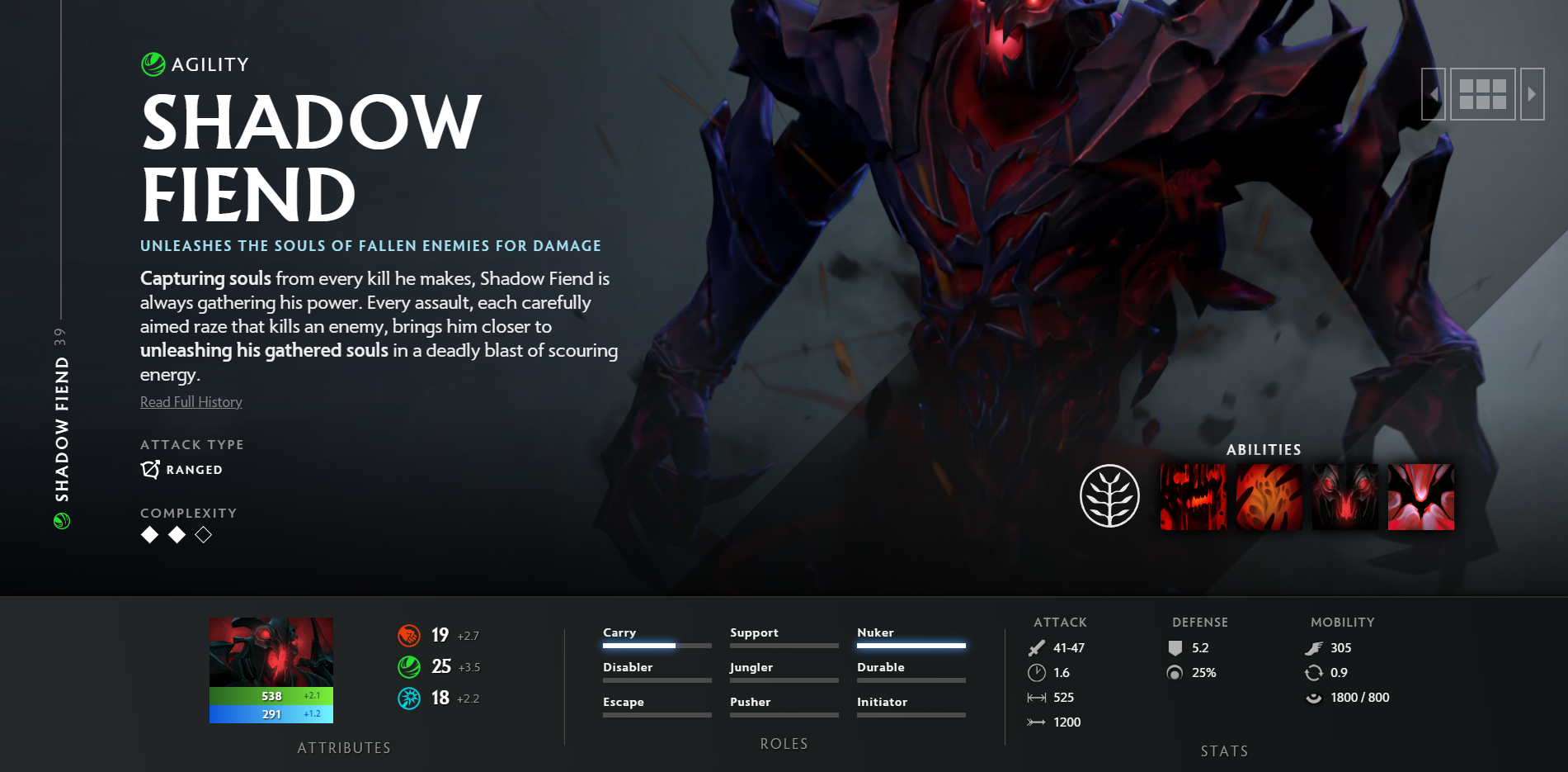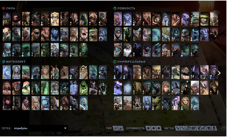 Kangelasel klõpsates saate vaadata tema peamist atribuuti, võimeid, liikumiskiirust, ründekiirust ja tegelaste ajalugu